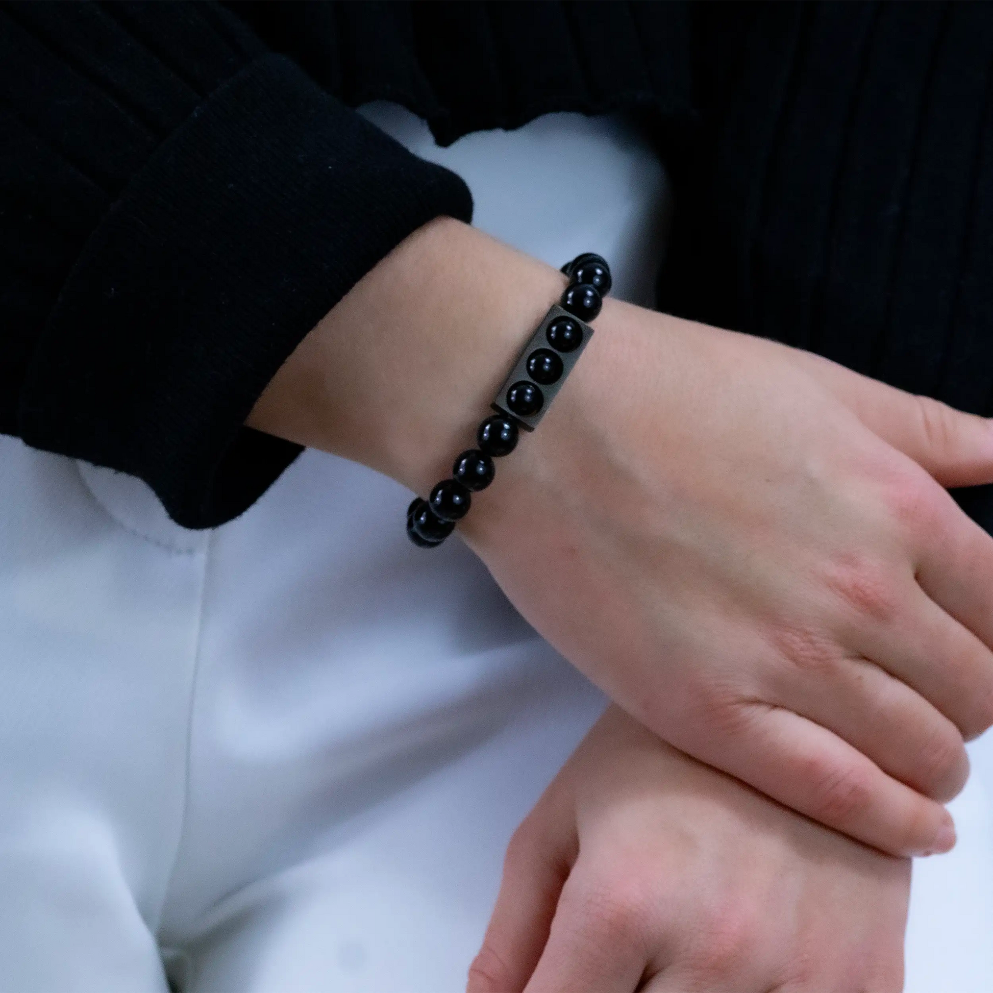 Bracelet extensible Onyx en acier inoxydable couleur noire.