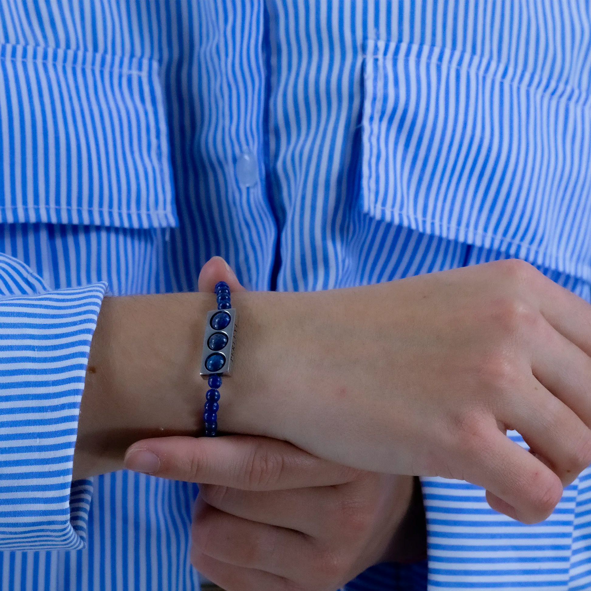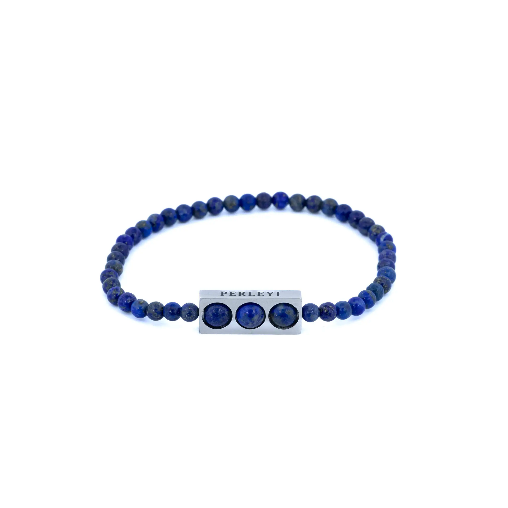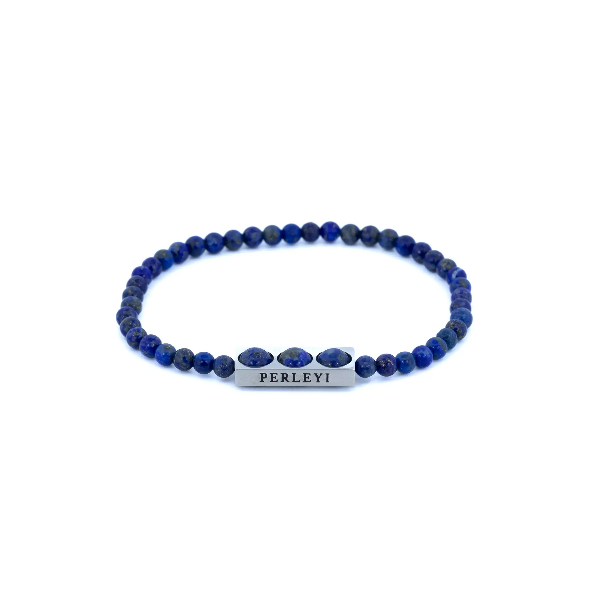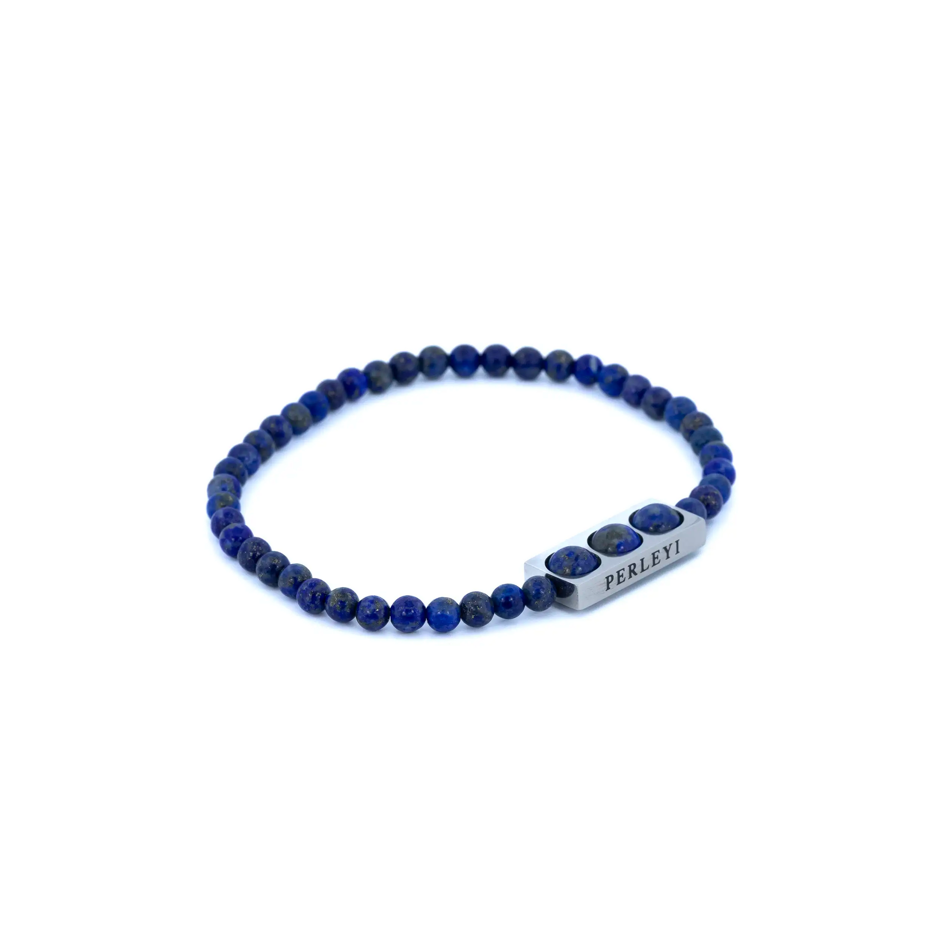 Bracelet extensible Lapis-lazuli couleur Argent.