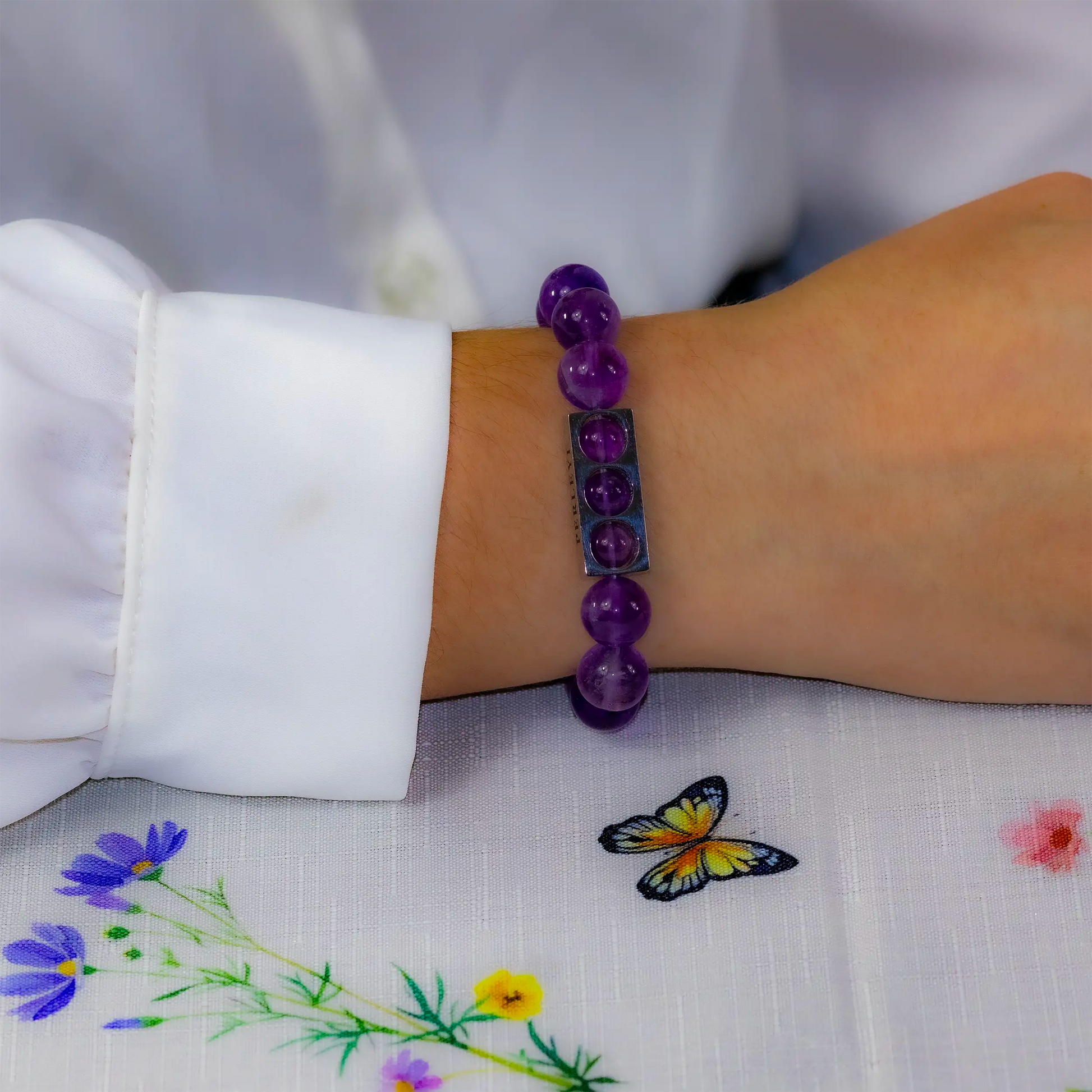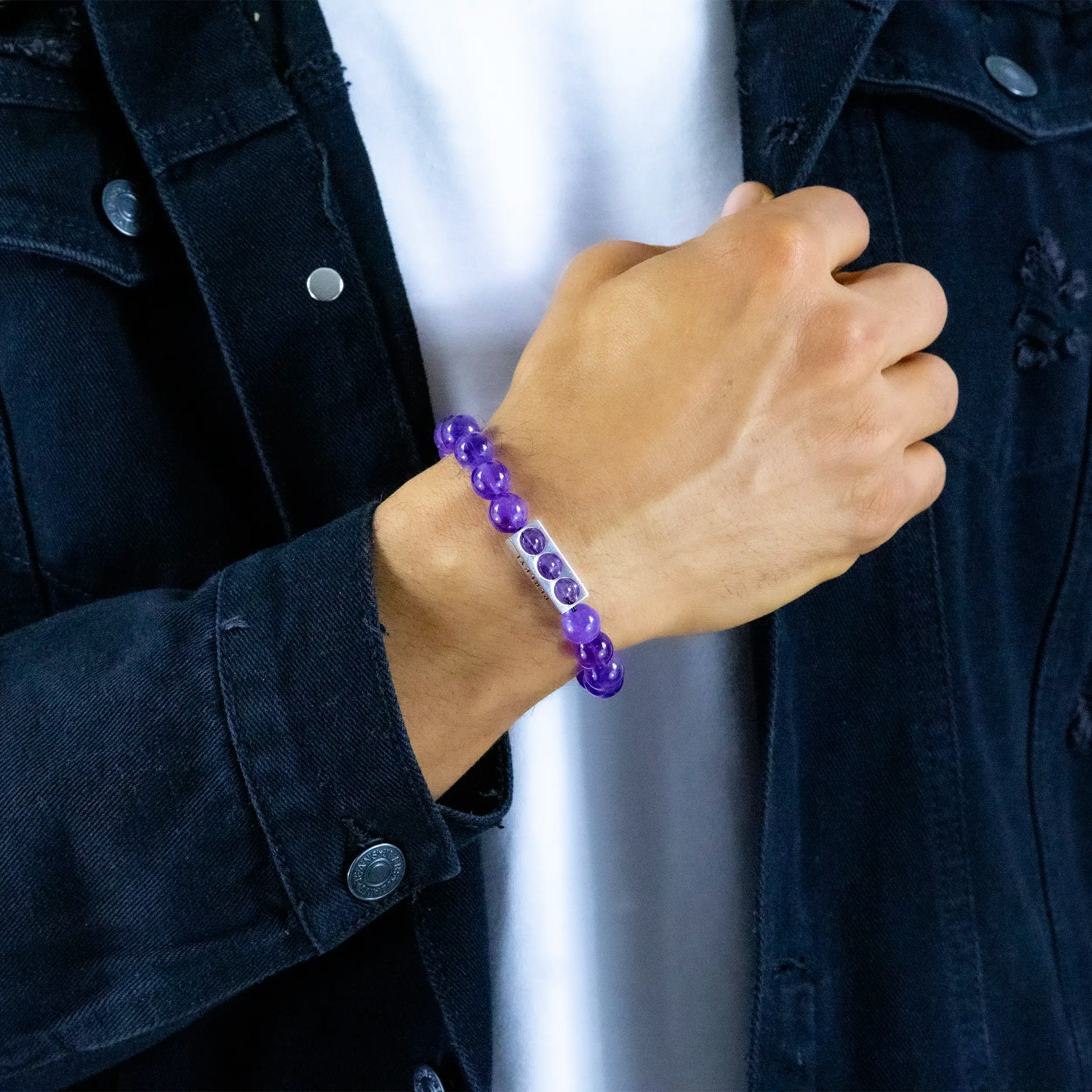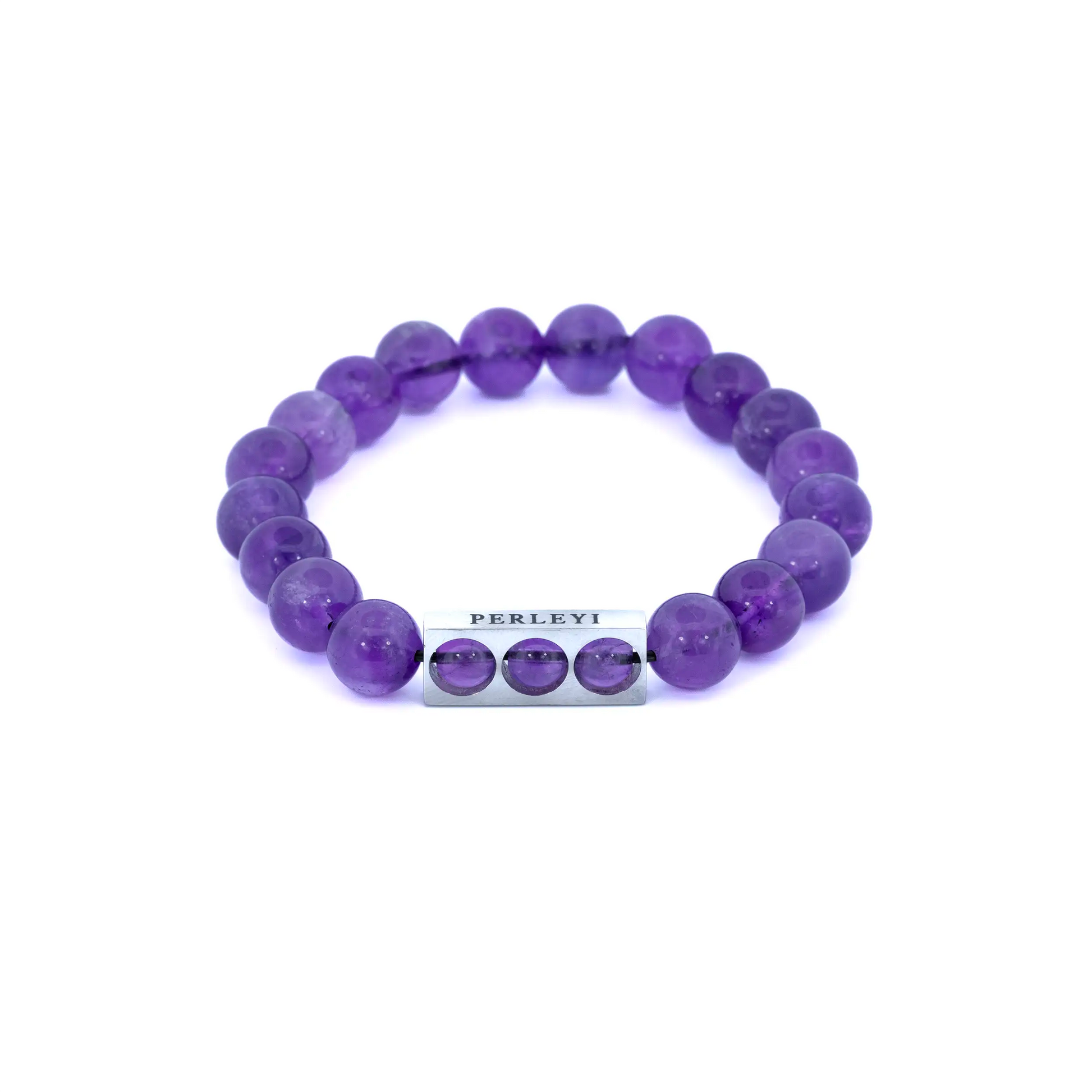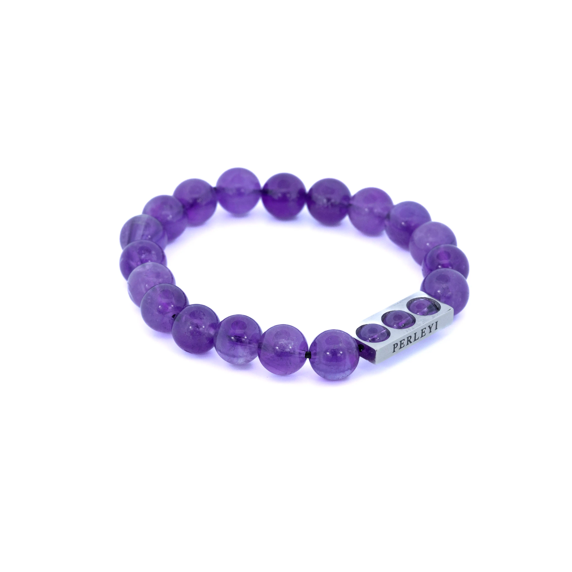 Bracelet extensible Améthyste en acier inoxydable couleur argent.
